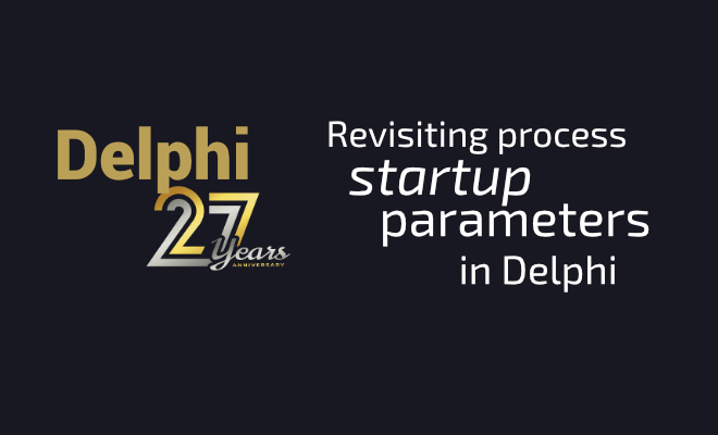 This week is Delphi’s 27th anniversary and the team here at Grijjy is excited about all the great things that have happened over the past year in the Delphi world. Just seeing the thousands of attendees this week for the Delphi 27th webinar was amazing, but we can really feel the growing momentum in the… Continue reading Delphi’s 27th anniversary! Startup settings and parameters revisited